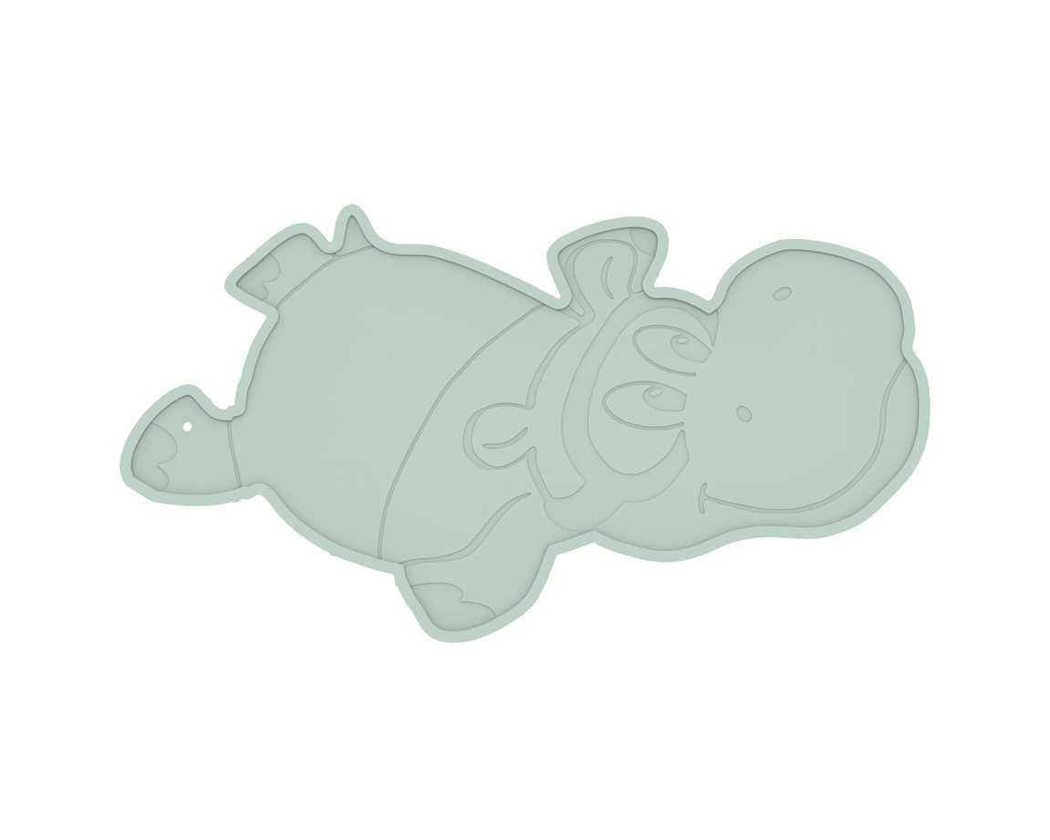 Ten zabawny hipopotam w kolorze mint posiada poza przyssawkami także otwór, dzięki któremu można łatwo zawiesić matę do wyschnięcia.