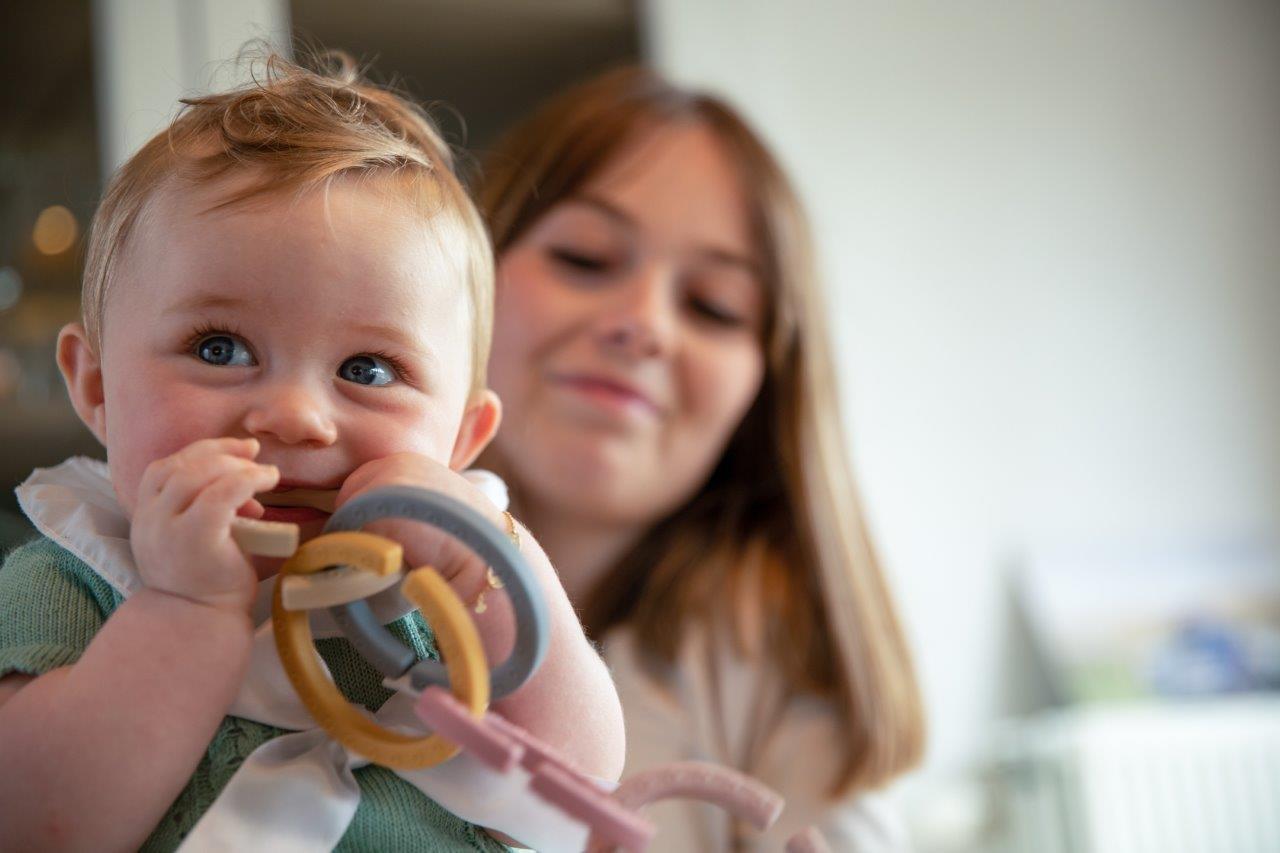 silikonowego gryzaka, który pomaga koić swędzące dziąsła podczas ząbkowania