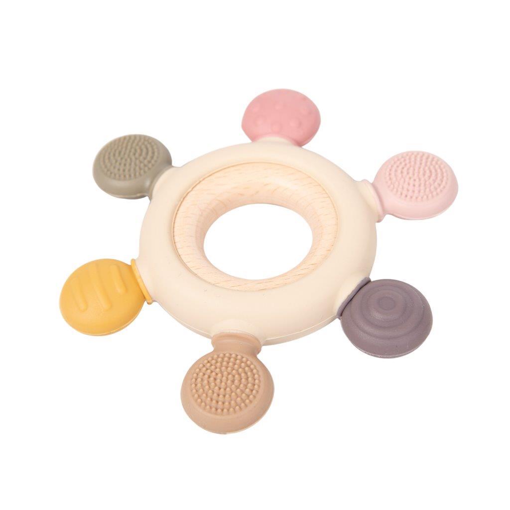 Wykonana z silikonu i drewna bukowego, średnica kółka 6 cm / z