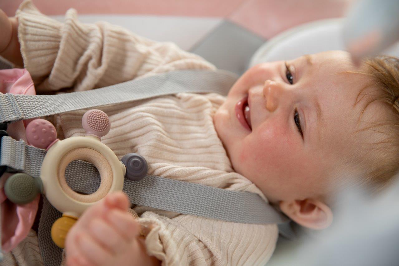 zarówno odruch brania, chwytania, zachęca do badania kształtu, wspomaga rozwój motoryki, ćwiczy koordynację ręka-oko oraz wspomaga rozwój sensoryczny maluszka. Łagodzi ból