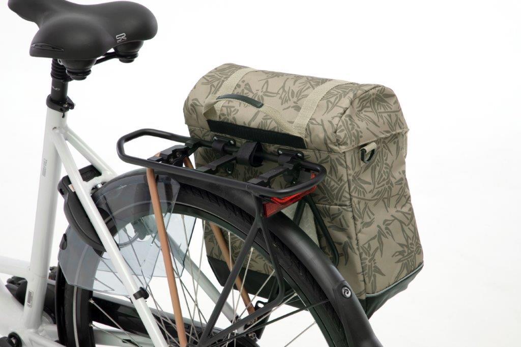 znajdują się dwa małe zatrzaski. Modny wzór sakw sprawia, że ta sakwa rowerowa