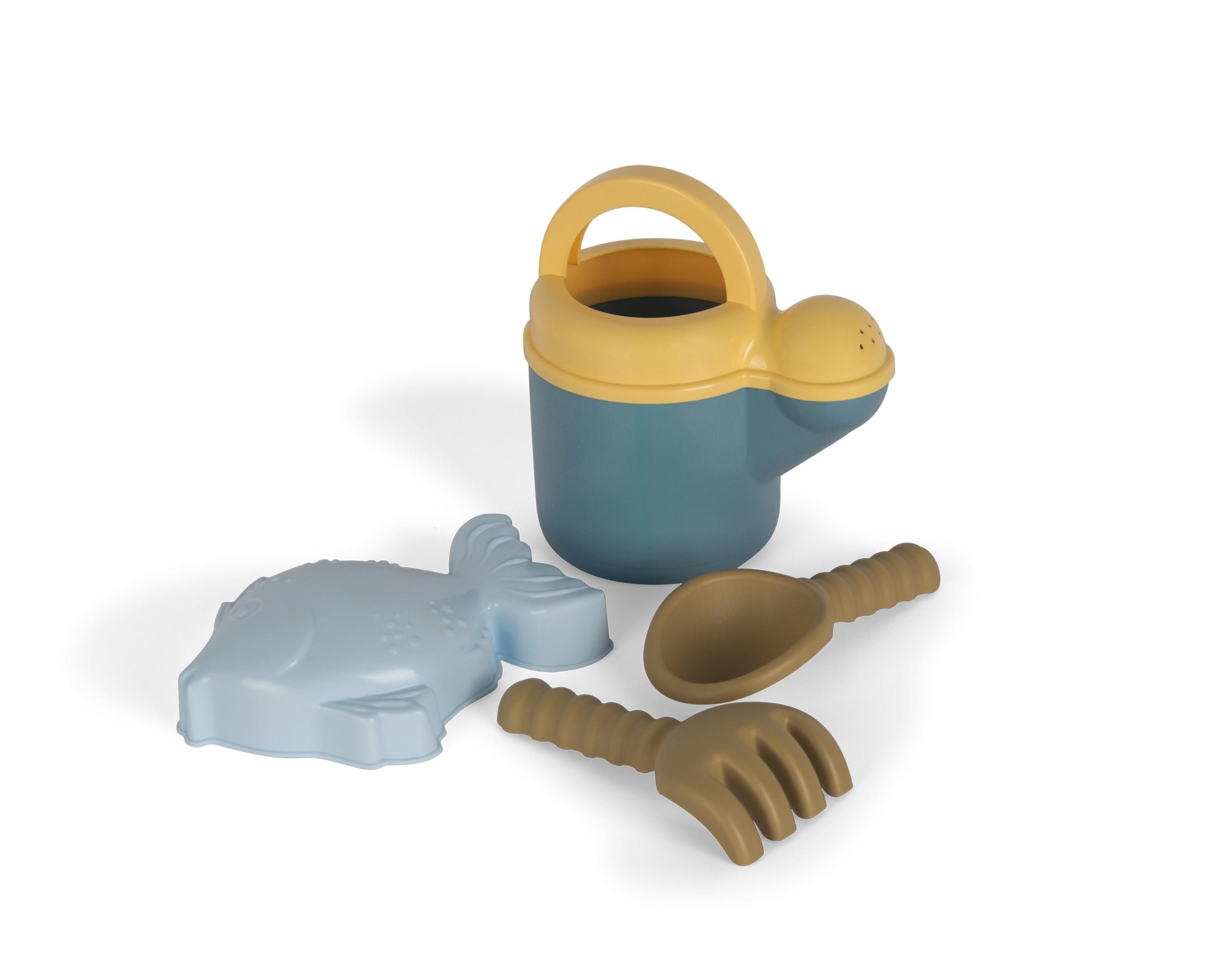 wodę, foremką do piasku, łopatką i grabkami. Zestaw jest idealny do zabawy i