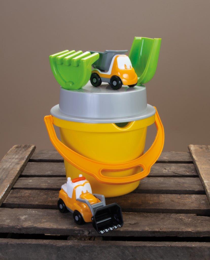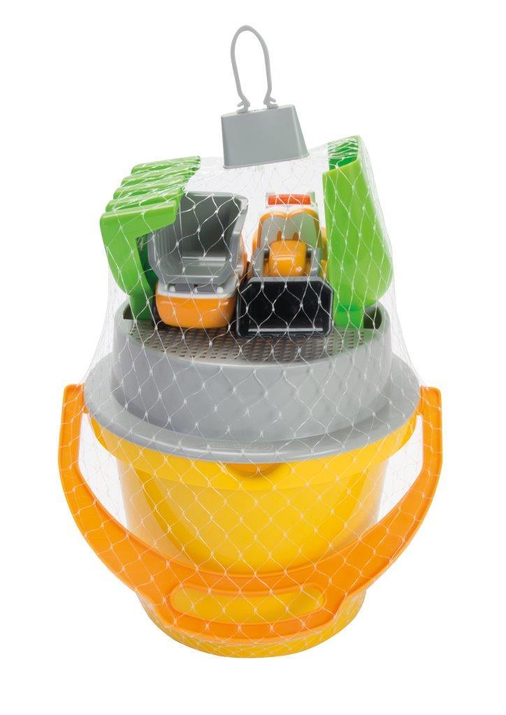 Duży zestaw do piasku składa się z wiaderka z łopatką,