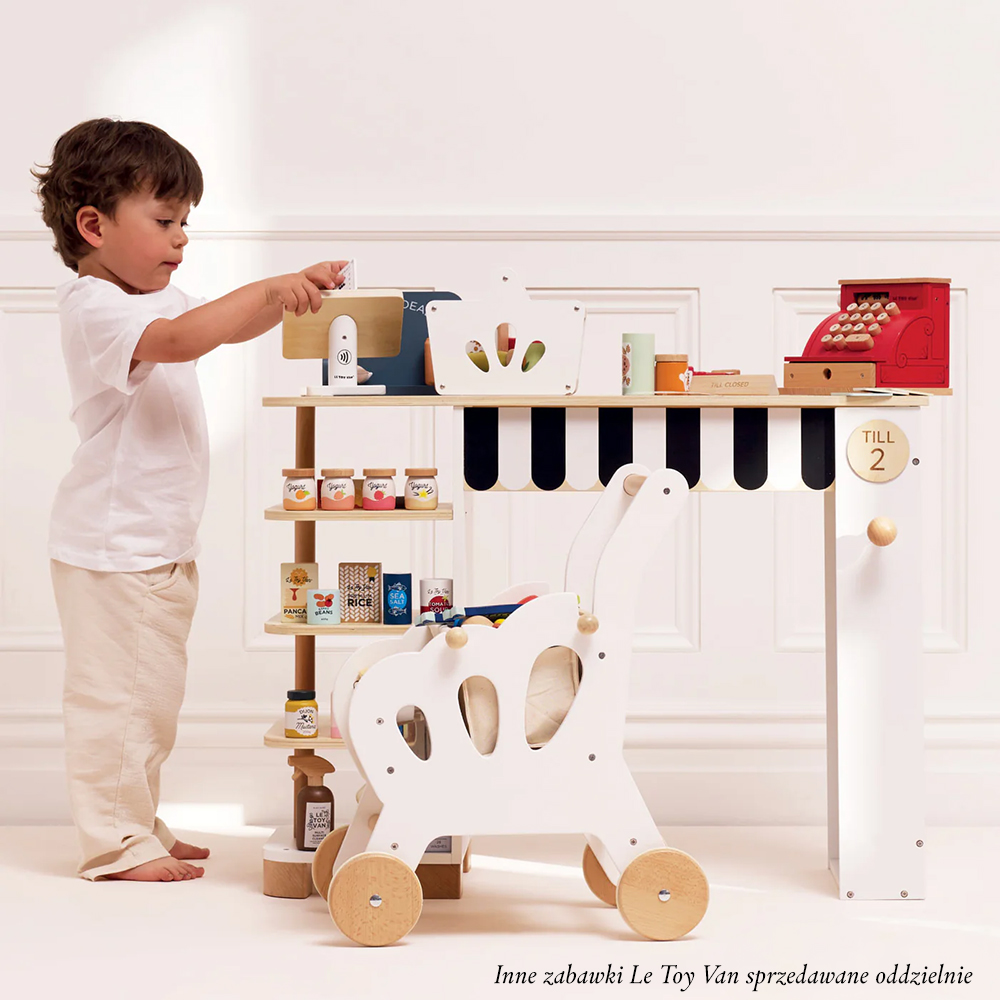 Odkryj pełną gamę akcesoriów i zestawów do zabawy w sklep i pozwól swojemu dziecku rozwijać kreatywność i bawić się bez końca. Możesz połączyć kasę np. ze straganem lub artykułami spożywczymi marki Le Toy Van sprzedawanymi osobno.