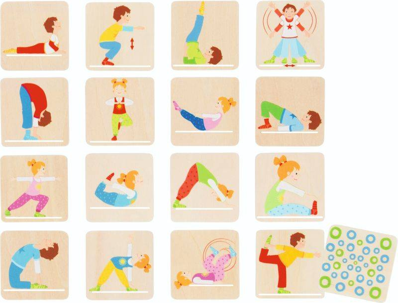 Klasyczna gra memo przedstawiająca ćwiczenia gimnastyczne.
