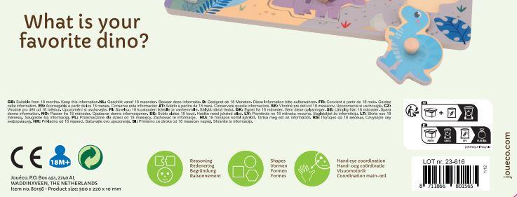 składa się z planszy oraz 7 różnych dinozaurów, które należy do niej dopasować.