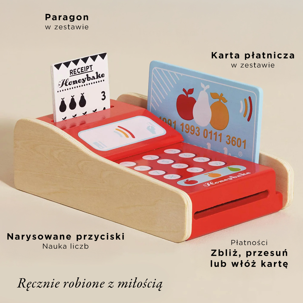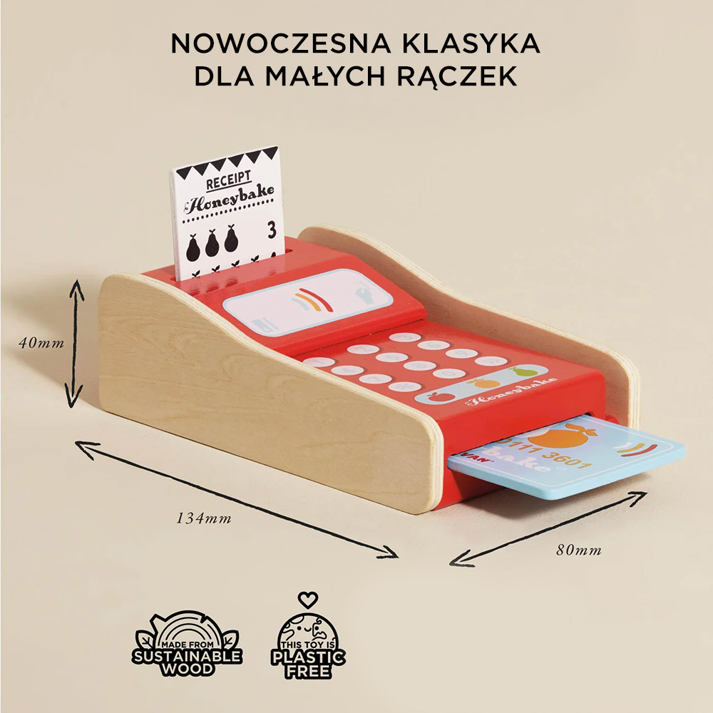 Terminal jest częścią wielokrotnie nagradzanej kolekcji Honeybake marki Le Toy Van. Odkryj pełną gamę akcesoriów oraz zestawów do zabawy w sklep i pozwól swojemu dziecku rozwijać kreatywność i bawić się bez końca.