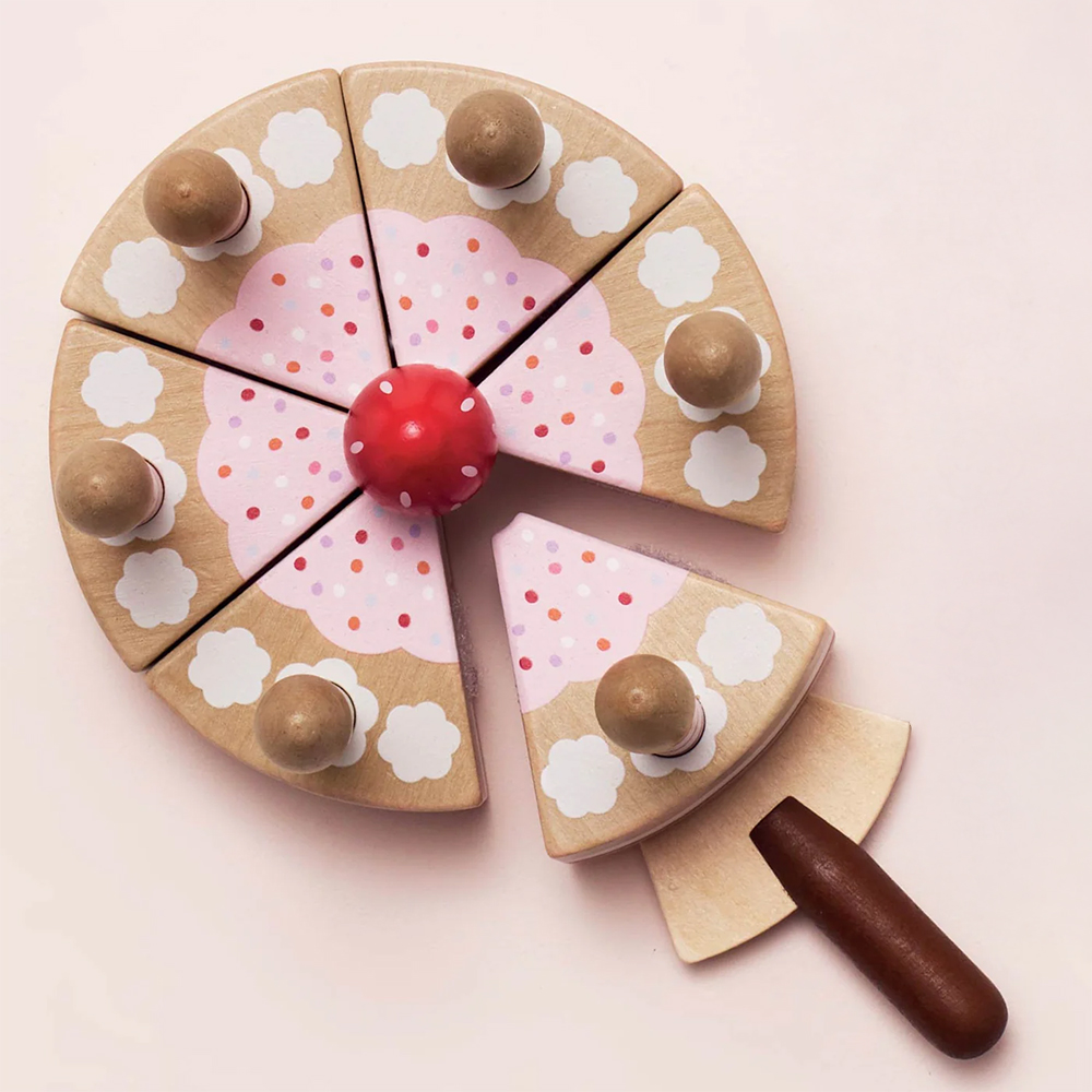 Rozsmakuj się w tym pysznym torcie urodzinowym, ale najpierw pomyśl życzenie i zdmuchnij świeczki! Ta piękna drewniana zabawka dla dzieci ma urocze dekoracje i elementy łączone na rzepy, które można składać i rozkładać do woli. Opakowanie zawiera tort i szpatułkę do serwowania. Urocze detale i apetyczna truskawka na środku tortu zapraszają Twoje dziecko do wybornej, kreatywnej zabawy, odgrywania ról i tworzenia zupełnie nowych historii.