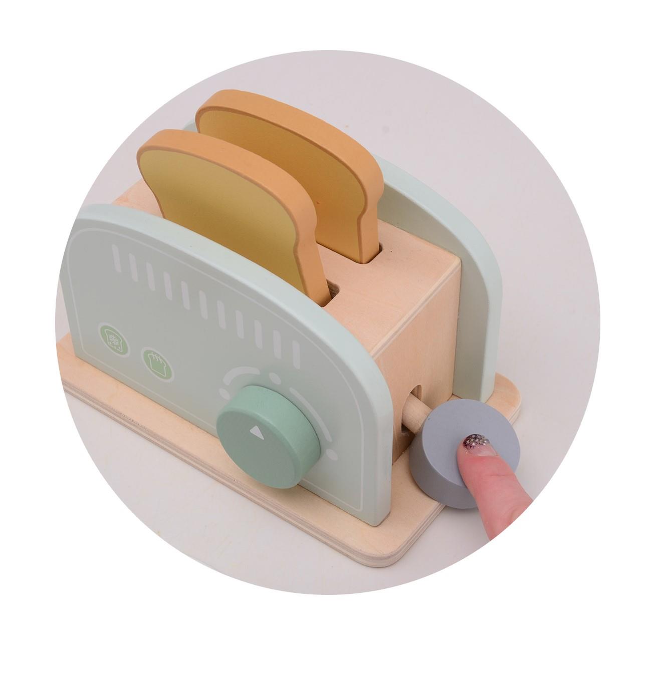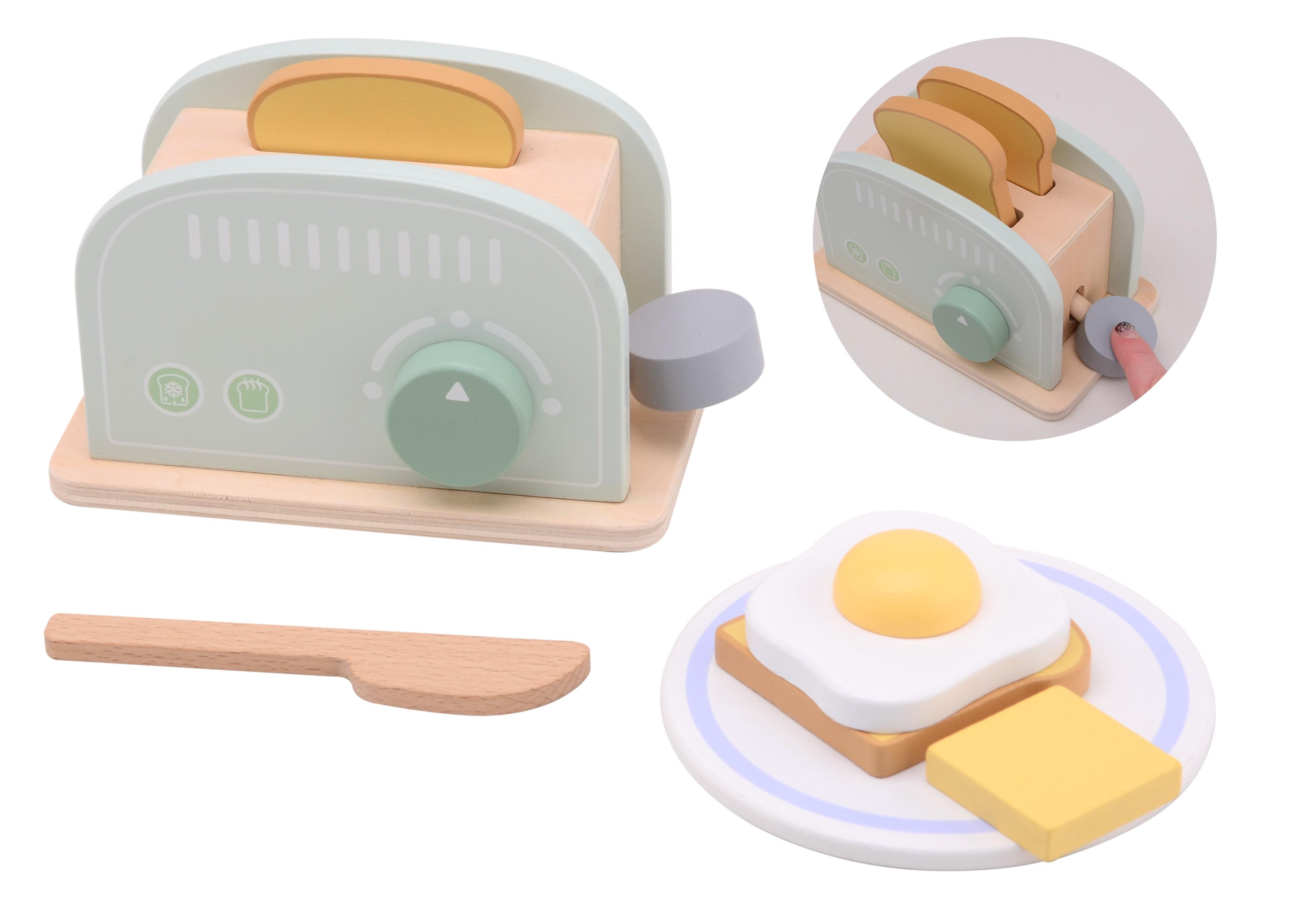 mechanizm tostera urealni dziecięcą zabawę. Toster zawiera 2 wypieczone tosty,
