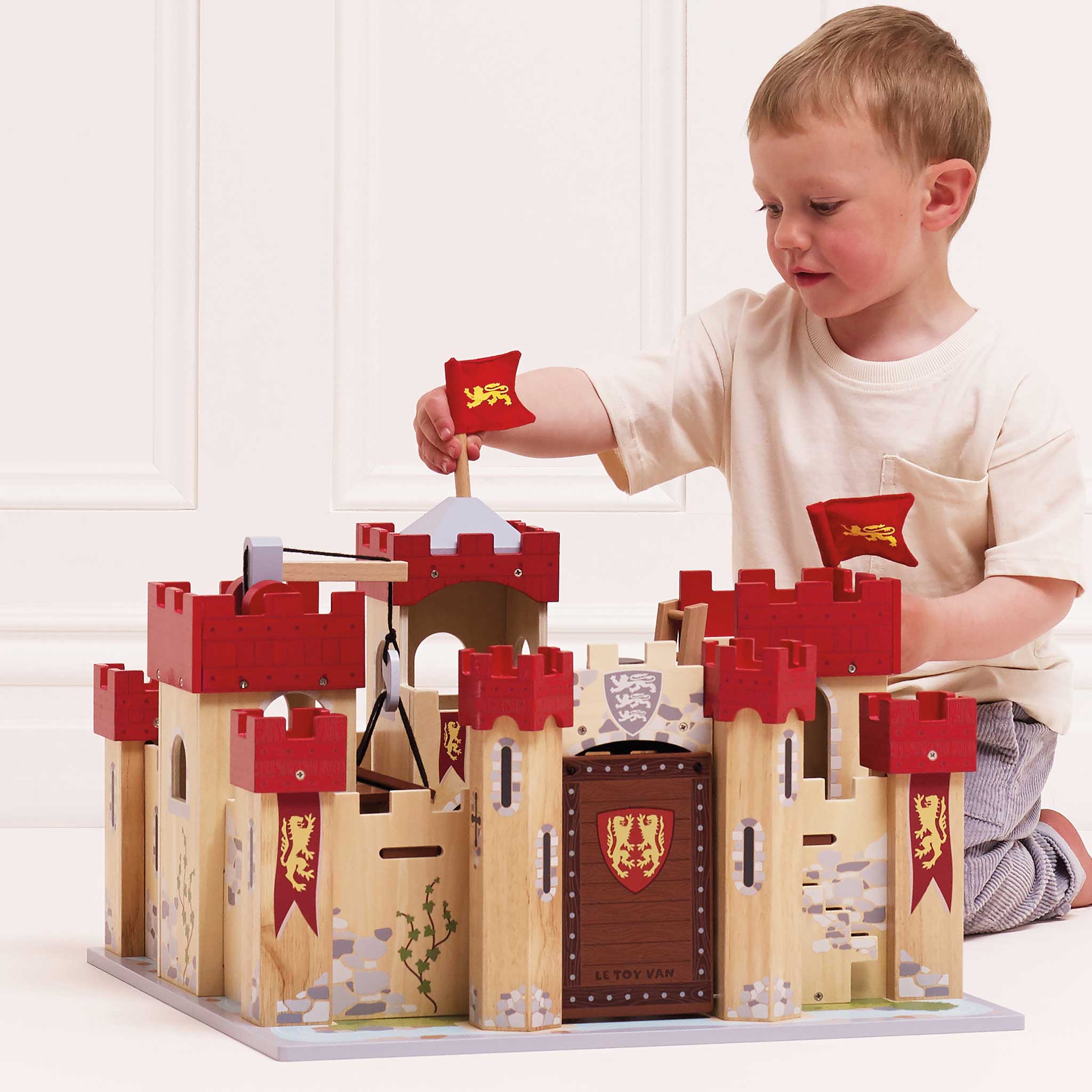 Baśniowy zamek spełnia dziecięce marzenia o własnej krainie zabawy, w której wszystko jest możliwe! Ta okazała budowla zawiera szereg ekscytujących, interaktywnych funkcji takich jak most zwodzony, ściana, którą można burzyć, wyciąg linowy, wieże i baszty, drabiny, flagi i lochy więzienne. Rozpala wyobraźnię i zaprasza do aktywnego odgrywania ról i tworzenia nowych, ciekawych i niewiarygodnie wspaniałych historii.