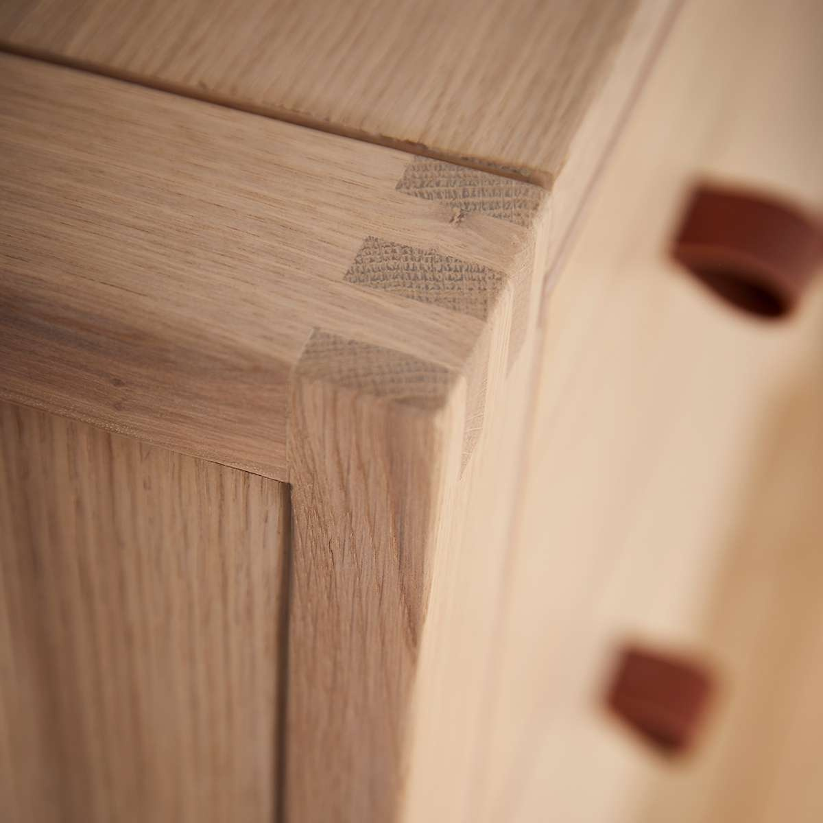 Komoda posiada funkcję cichego domykania, która chroni małe ciekawskie paluszki podczas otwierania i zamykania szuflad. Komoda posiada miękkie, skórzane uchwyty, które z łatwością można wymienić na inny kolor lub filc, dostosowując się do własnego stylu.