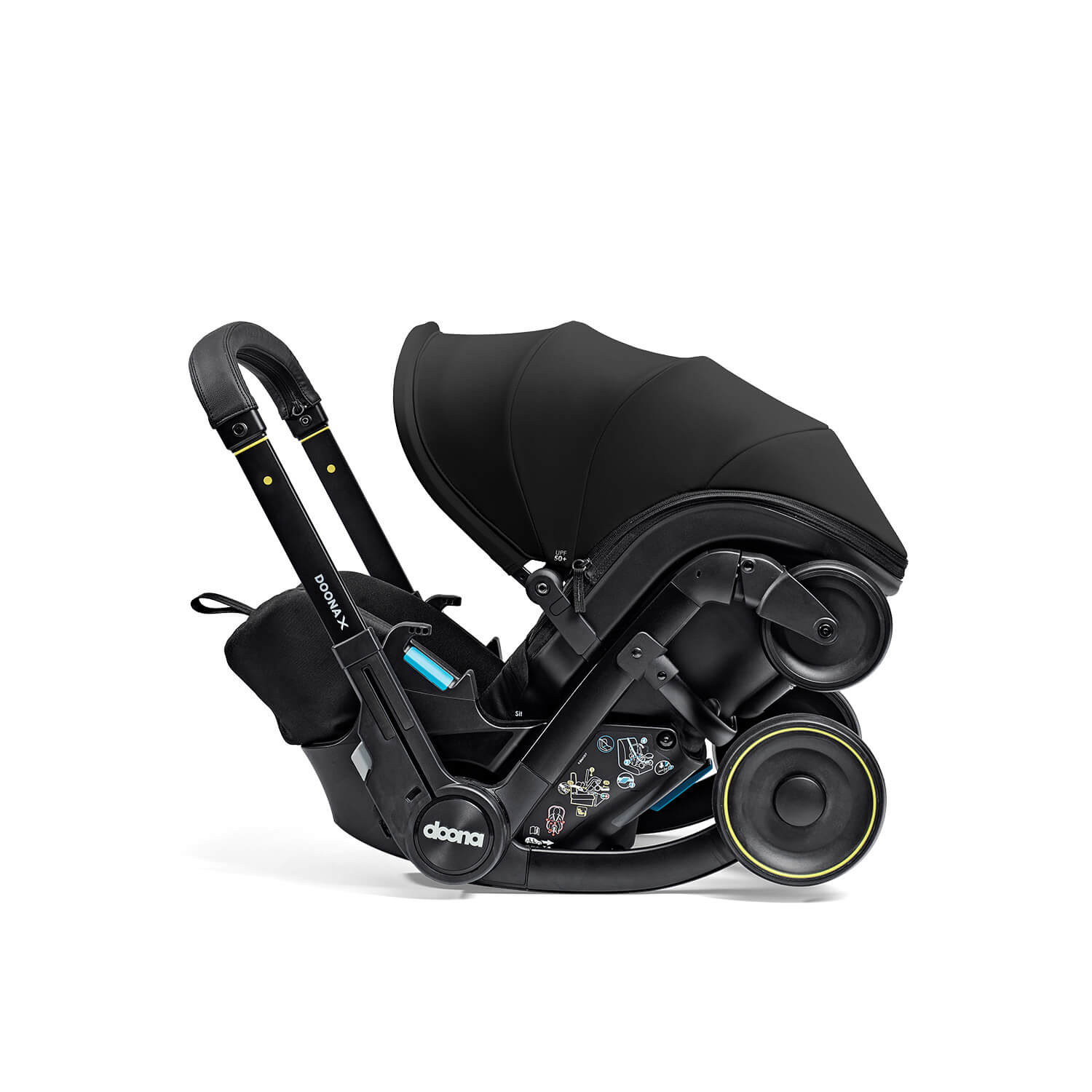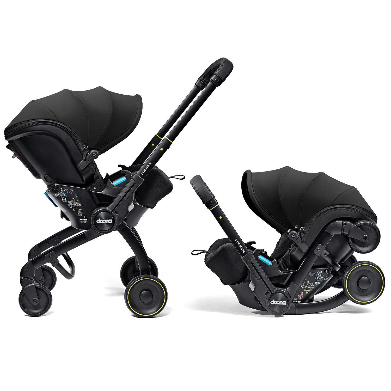 Doona X to w pełni zintegrowany system podróżny, który w kilka sekund zmienia się z fotelika samochodowego w wózek. Zwalnia miejsce w bagażniku i ułatwia każdy krok – od wyjścia na zakupy, po lot samolotem.