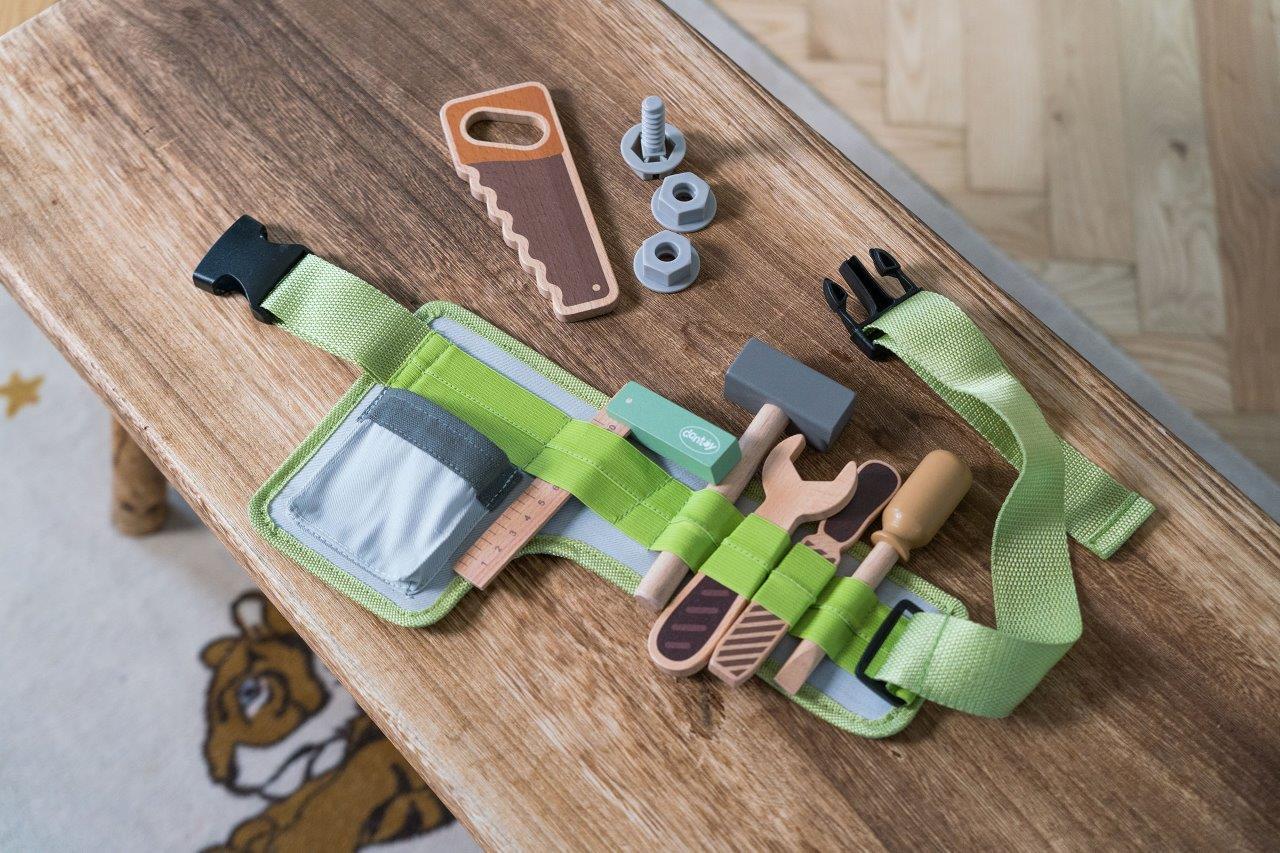 Pas z narzędziami z drewna DANTOY – Zestaw 11 części do zabawy w Z paskiem wyposażonym w drewniane narzędzia marki Dantoy, Twoje dziecko może Co znajdziesz w zestawie? Zabawki drewniane Dantoy z serii Playful Wood zostały stworzone z myślą o Dodatkowe informacje: OSTRZEŻENIE: Zawiera małe części/kulkę,