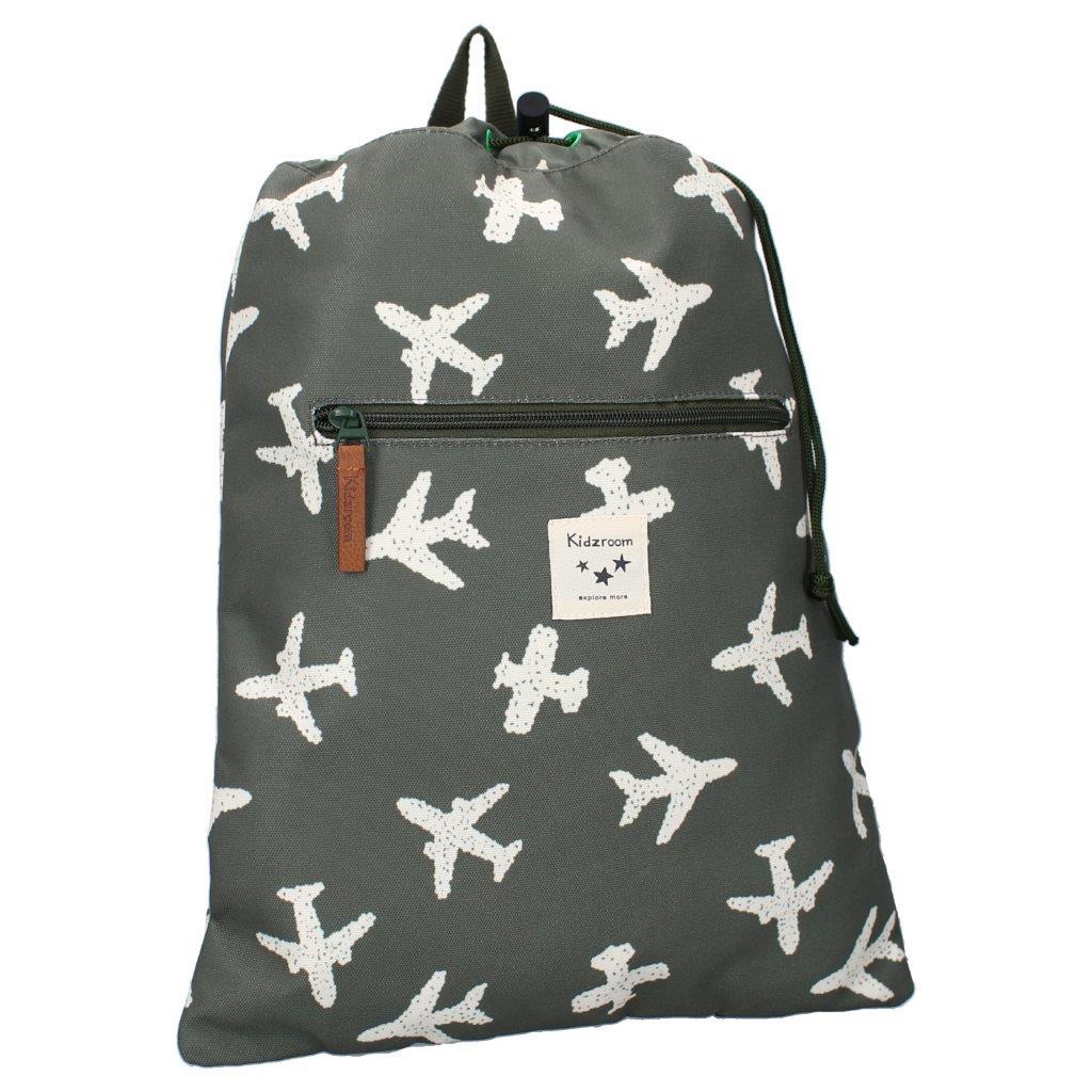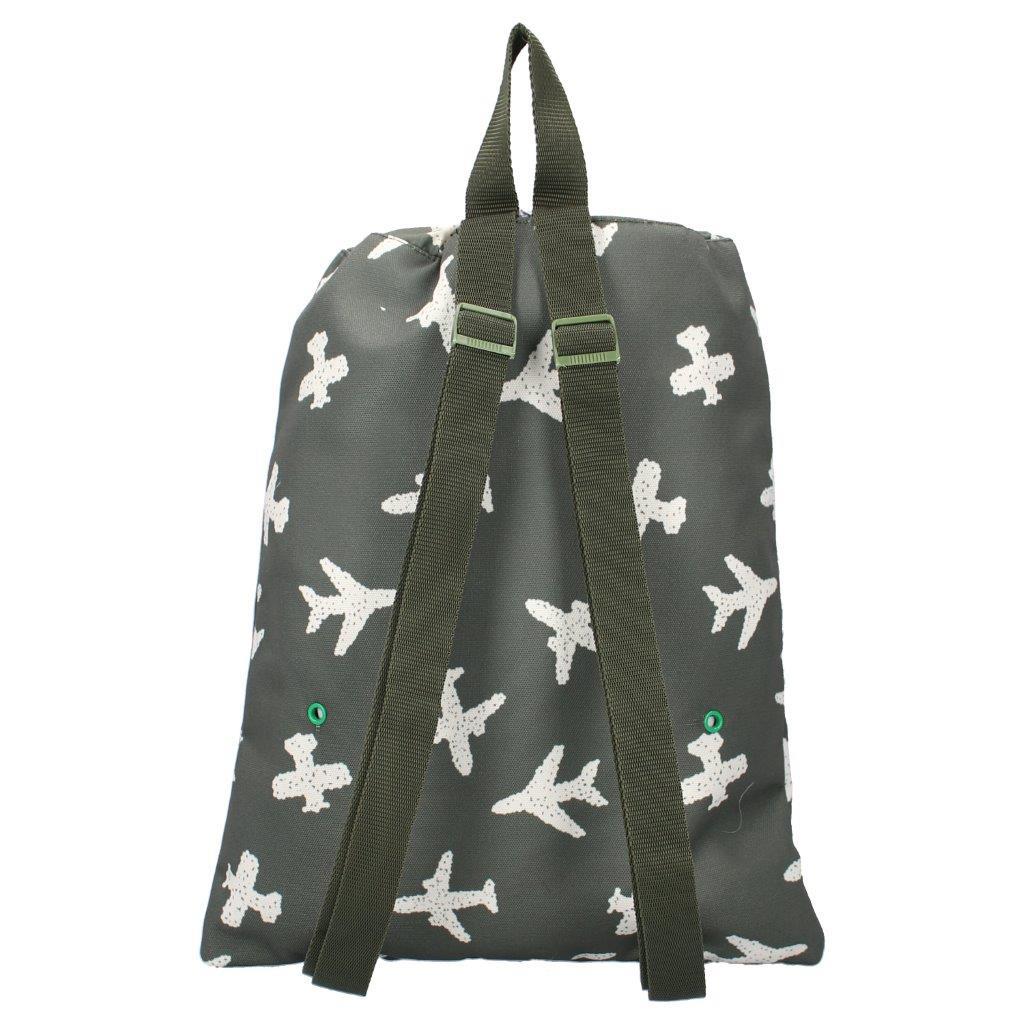 nadruk z samolotami na całej powierzchni. Worek ma zapięcie na